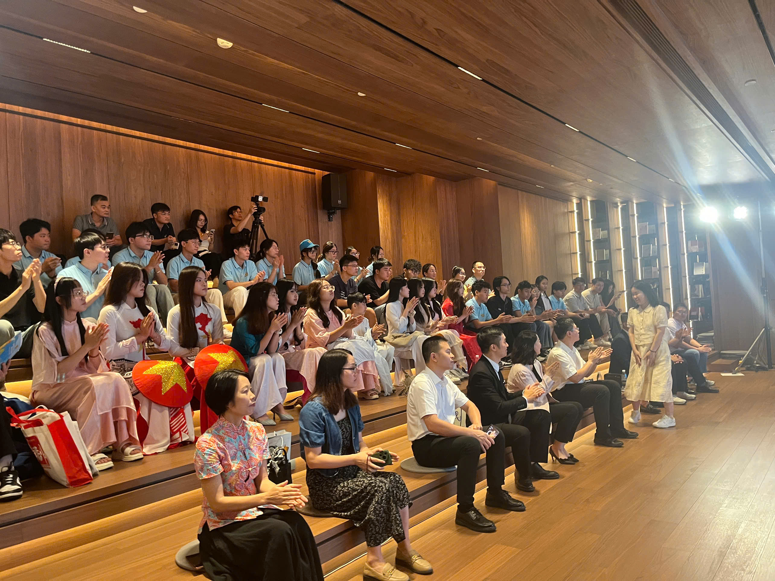 - Buổi Sáng: Các em có buổi giao lưu văn nghệ với sinh viên, cán bộ công chức viên tại nhà trường, các em góp sức vào các tiết mục văn nghệ. Viện trưởng nhà trường cũng lên phát biểu cảm nhận về ý nghĩa to lớn của hành trình giao lưu văn hóa giữa hai nước. Đây cũng là chương trình thay lời chào tạm biệt của đoàn trại hè công nghệ cao năm nay